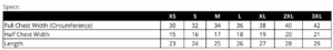 XS, S, M, L, XL, 2XL, 3XL